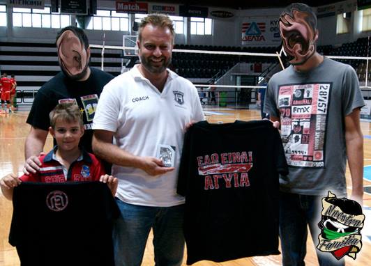 Αντιπροσωπεία του συνδέσμου βρέθηκε στο φιλικό αγώνα της ομάδας βόλλευ της ΠΑΝΑΧΑΪΚΗΣ με την Χαλκίδα για να τιμήσει τον προπονητή της φιλοξενούμενης ομάδας,Σπύρο Γκολίτση. Μέλη του συνδέσμου προσέφεραν τις φετινές συλλεκτικές μπλούζες με το γήπεδο της Αγυιάς ,και στον γιό του ,σαν μια ένδειξη εκτίμησης και σεβασμού σε έναν άνθρωπο ,ο οποίος αν και δεν έχει γεννηθεί ή μεγαλώσει στην Πάτρα,αγαπάει την ομάδα μας και δηλώνει ένθερμος υποστηρικτής της ,απο μικρό παιδί. Η αγάπη του για την ομάδα έχει φανεί στην πορεία του χρόνου με την παρουσία του σε πολλούς εκτός έδρας αγώνες της ομάδας.Το γεγονός ότι ένας άνθρωπος ,που μεγάλωσε στη Φλώρινα και είναι ΜΟΝΟ ΠΑΝΑΧΑΪΚΗ,πρέπει να αποτελέσει παράδειγμα πρός όλους. Η δύναμη της ομάδας είναι μεγάλη και αρνούμαστε να δεχτούμε οτι πατρινοί, όχι μόνο δεν στηρίζουν την ομάδα αλλά φτάνουν σε σημείο να αδιαφορούν γιια την πορεία αυτής.Ό άνθρωπος αυτός δείχνει τον δρόμο… Φίλε Σπύρο θα τα πούμε στα γήπεδα που θα αγωνίζεται η ΠΑΝΑΧΑΪΚΑΡΑ…